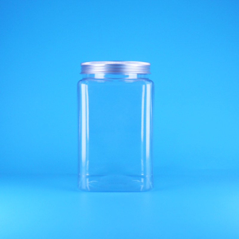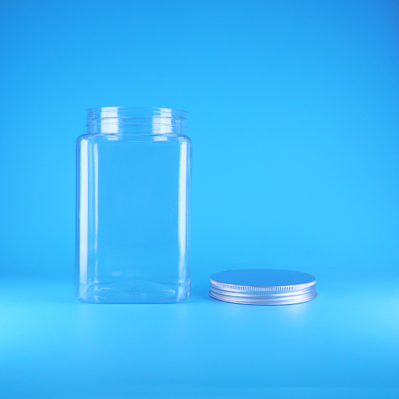 Cheap Clear Empty Square China PET Plastic Candy Jars Bulk Screw Aluminum Cap