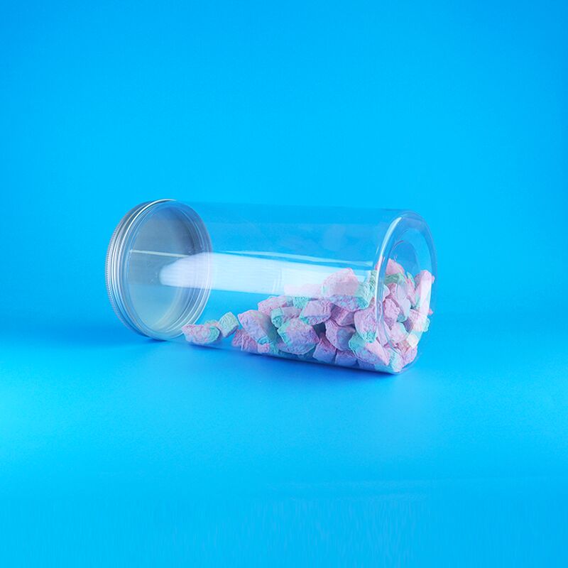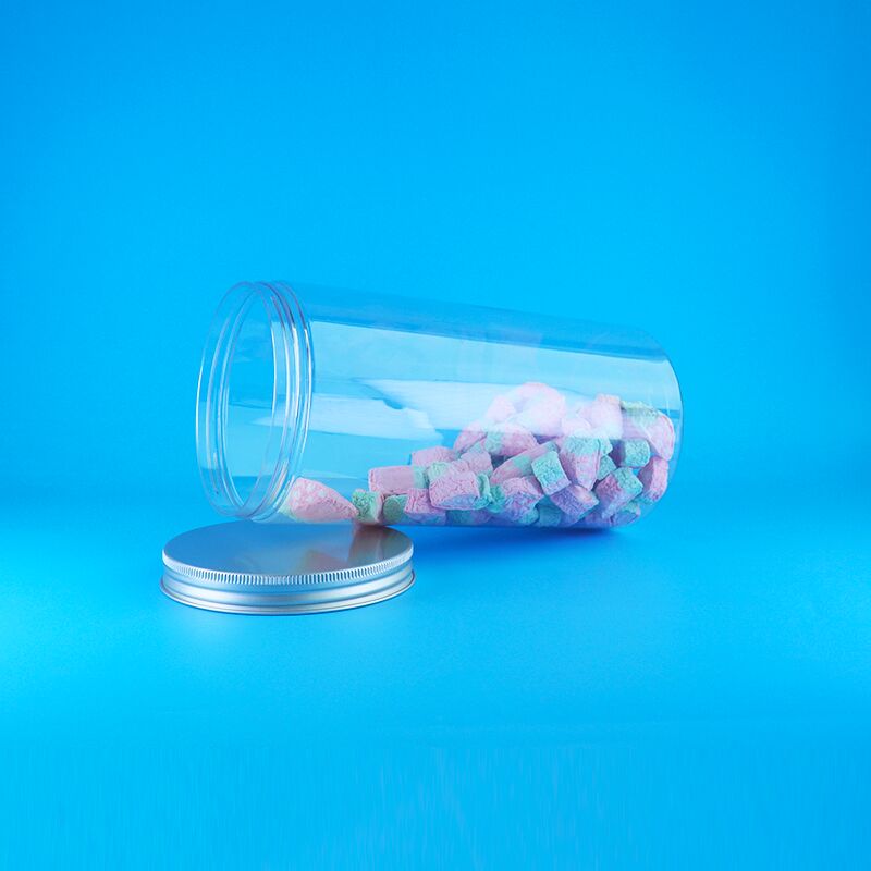 Wide Mouth Aluminum Lids Clear Tall Round Plastic Dry Food Cookies Candy Jars