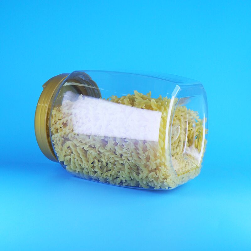 Transparent Square Handle Flat Lid Plastic PET Candy Cookies Dry Food Baby Food Jars