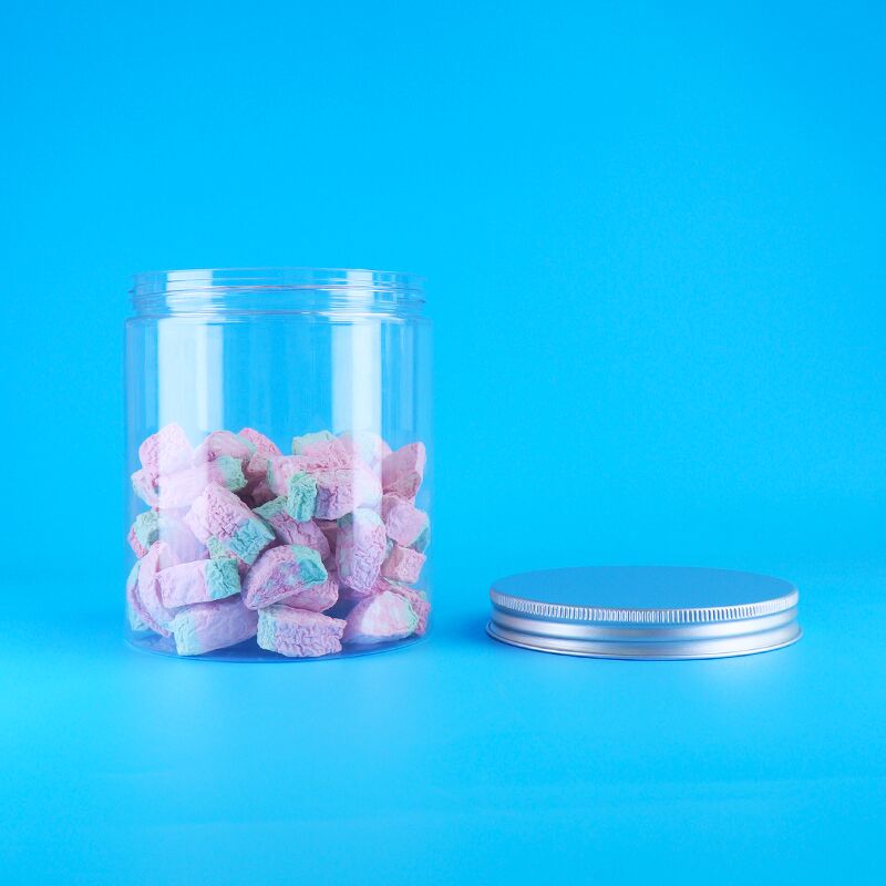 Clear PET Plastic Round Jar Packaging Nougat Macadamia Nut Shrimp Chips Screw Lid